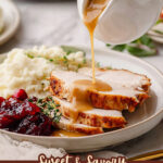 - Serve: Slice the rested turkey breast and serve with the bourbon maple gravy poured over or on the side.
