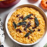 A comforting and luxurious butternut squash risotto featuring roasted squash, crispy chorizo, and a nutty sage brown butter drizzle. This creamy risotto is perfect for fall and special occasions, combining sweet squash and savory cheese flavors with a delightful crispy topping.