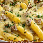 This Cheesy Ground Beef Pasta Skillet combines tender ground beef, ziti pasta, and a luscious blend of mozzarella cheese for a comforting and flavorful one-pan meal. With a hint of garlic, red chili flakes, and fresh parsley, this dish is perfect for a quick dinner that doesn't compromise on taste.