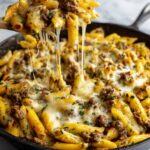 This Cheesy Ground Beef Pasta Skillet combines tender ground beef, ziti pasta, and a luscious blend of mozzarella cheese for a comforting and flavorful one-pan meal. With a hint of garlic, red chili flakes, and fresh parsley, this dish is perfect for a quick dinner that doesn't compromise on taste.