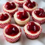 Delight in these Cherry Cheesecake Cupcakes featuring a smooth and creamy cheesecake batter atop a crunchy vanilla wafer base, finished with a sweet cherry pie filling. Perfectly portioned for individual servings, these cupcakes are an elegant and delicious dessert that will impress at any gathering.