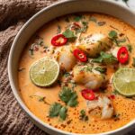This rich and creamy Thai-inspired Coconut Lime Fish Soup is a nourishing and flavorful dish featuring tender white fish fillets simmered in a fragrant coconut milk broth with lime, red curry, and fresh aromatics. Perfect for a comforting meal packed with protein and vibrant flavors.