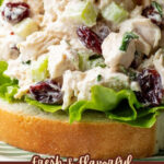 A creamy and flavorful cranberry chicken salad with crunchy walnuts, fresh dill, and a hint of orange zest, perfect for sandwiches, wraps, or as a refreshing side dish.