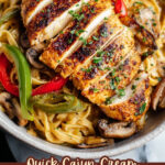A flavorful and creamy Cajun Chicken Pasta featuring tender boneless chicken breasts, sautéed bell peppers, onions, and mushrooms tossed in a rich Cajun-spiced cream sauce over linguine noodles. This dish delivers a perfect balance of spice, creaminess, and fresh vegetables, ideal for a satisfying weeknight dinner.