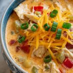 - Finish and serve: Return the shredded chicken to the pot, stir well, and serve immediately. Optionally, top with chopped green onions, sharp cheddar cheese, and extra hot sauce for added flavor.