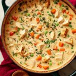 This Creamy Chicken Casserole is a comforting and hearty dish featuring tender chicken breast cooked in a rich, creamy sauce with vegetables, served over mashed potatoes and garnished with fresh parsley. Perfect for a family dinner, it combines savory flavors and a satisfying texture, baked to perfection in a casserole dish.