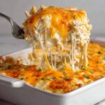 This Sour Cream Enchilada Casserole is a rich and creamy Mexican-inspired dish featuring layers of tender shredded chicken, creamy sour cream sauce, pickled jalapenos, and a blend of Monterey Jack and Cheddar cheeses baked to perfection. It's a delightful casserole that captures all the flavors of classic enchiladas without the hassle of rolling tortillas, making it a perfect comforting meal for any occasion.