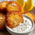Crispy fried zucchini rounds coated with seasoned flour and panko breadcrumbs, served with a tangy garlic aioli dipping sauce. Perfectly crunchy on the outside while retaining the zucchini's natural juiciness on the inside, ideal as an appetizer or snack.