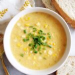 A creamy and hearty Corn Chowder made with tender potatoes, sweet corn, and melted cheddar cheese, perfect for a comforting meal served with fresh bread and salad.
