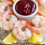 Lay a bed of crushed ice on a serving platter – it keeps the shrimp chilled and looking fresh. Arrange the shrimp over the ice, add lemon wedges for squeezing, and place the cocktail sauce in a bowl on the side. Serve immediately to enjoy that fresh, cool snap.