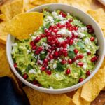 Festive Pomegranate Guacamole is a vibrant and flavorful twist on the classic guacamole, combining creamy ripe avocados with zesty lime, fresh cilantro, jalapeños, and juicy pomegranate arils. This colorful dip is perfect as a holiday appetizer or a snack, offering a refreshing balance of creamy, spicy, and sweet flavors with optional crumbled feta for extra tanginess.