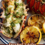 - Serve: Drizzle lobster tails with reserved garlic butter and squeeze the charred lemon over them. Serve immediately for best flavor.