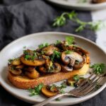 Delicious Garlic Mushroom Bruschetta featuring perfectly sautéed chestnut mushrooms on toasted sourdough bread, seasoned with garlic, thyme, and fresh parsley. This flavorful appetizer or light lunch is ideal for mushroom lovers seeking a simple yet elegant dish.