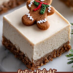 - Chill and Serve: Refrigerate the cheesecake bars for 2 hours to overnight to set completely. Remove from the pan using the parchment overhang, cut into 12 bars, and garnish with mini gingerbread cookies or festive sprinkles.