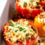 - Bake the Peppers: Place stuffed peppers on a baking tray and bake in the preheated oven for 20 minutes or until peppers are tender and cheese is melted and slightly golden.