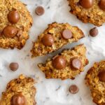 - Shape Cookies: Scoop the mixture into 8 cookie shapes onto a lined baking tray. Press the remaining chocolate chips on top of each cookie if using.