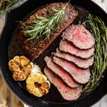 - Add Butter and Herbs: Add butter, fresh rosemary, fresh thyme, and garlic to the skillet. Once the butter melts, spoon the melted butter and herbs repeatedly over the tenderloin to enhance flavor.