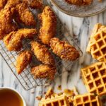 - Serve: Plate the waffles and top with the crispy fried chicken. Drizzle the warm honey generously over the chicken and waffles for a sweet finish.