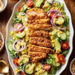 - Prepare Salad: On a large platter, arrange the chopped romaine lettuce. Top it with cucumber slices, cherry tomatoes, crumbled bacon, diced avocado, corn, and thinly sliced red onion. Slice the cooked chicken cutlets and arrange them on top of the salad, keeping the breast shape if preferred.