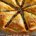 This Easy Italian Casserole is a delicious and comforting dish featuring a savory ground beef and tomato sauce filling baked inside a buttery crescent roll crust, topped with melted mozzarella and grated parmesan cheeses.