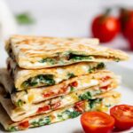 Mediterranean Quesadillas are a quick and healthy recipe featuring burrito-style tortillas filled with a delicious blend of feta and mozzarella cheeses, fresh spinach, diced tomato, and red onion. Perfect for a nutritious lunch or a speedy dinner, these quesadillas offer a satisfying combination of flavors and wholesome ingredients in just 15 minutes.