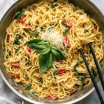 One Pan Pasta is a quick and flavorful meal that combines linguine, fresh vegetables, and herbs cooked together in a single pan for minimal cleanup. This easy recipe features cherry tomatoes, baby spinach, onions, garlic, and basil, all simmered in boiling water until the pasta is perfectly tender and infused with a light, delicious sauce. Parmesan cheese adds a creamy touch, and crushed red pepper gives a hint of heat, making it a comforting yet fresh dish perfect for busy weeknights.