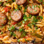 This flavorful one-pan orzo and chicken sausage recipe combines tender orzo pasta with juicy chicken sausage, earthy mushrooms, and vibrant green bell peppers in a savory tomato broth. It’s a balanced, protein-packed dish perfect for busy weeknight dinners or meal prep, offering comforting warmth and delicious taste all in one skillet.