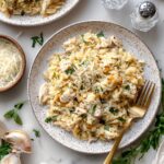 A comforting and hearty one pot French onion orzo with chicken recipe that blends tender caramelized onions, juicy chicken, and creamy cheese for a delicious and easy meal perfect for dinner.
