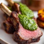 - Carve and serve: Slice the rack into individual or multiple cutlets per slice. Serve immediately with Salsa Verde and optionally alongside spring salad and mini potato gratin stacks for a complete meal.