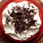 - Finish the cheesecake: Spread or pipe the whipped cream topping evenly over the set cheesecake. Garnish with additional dark chocolate shavings if desired.