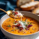 This Roasted Vegetable Soup is a flavorful and comforting dish featuring caramelized sweet potatoes, bell peppers, carrots, and garlic, blended into a creamy soup with parmesan cheese and fresh thyme. Perfect for a cozy meal, it combines the natural sweetness of roasted veggies with warming spices for a nutritious and delicious experience.