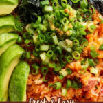 - Garnish and serve. Top the mixture with sliced avocado and finely sliced green onions. Serve immediately with nori sheets if desired.