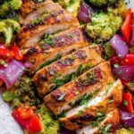 This Sheet Pan Chicken and Roasted Vegetables recipe offers a comforting, wholesome family dinner with tender, flavorful chicken paired with perfectly roasted sweet potatoes, potatoes, brussels sprouts, and bell peppers. Easy to prepare and cooked all on one pan, it simplifies dinner without sacrificing taste, featuring a blend of aromatic herbs and vibrant veggies.