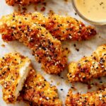 Crispy and flavorful Everything Bagel Chicken Tenders baked to golden perfection, coated with a savory blend of everything bagel seasoning, paprika, and breadcrumbs. A quick and easy dinner that pairs perfectly with your favorite dipping sauces.