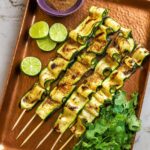 - Use thinly sliced zucchini ribbons to allow for quick grilling and easy weaving onto skewers.