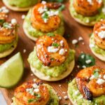 Spicy Shrimp Guacamole Bites are a flavorful and easy appetizer perfect for parties, featuring juicy roasted shrimp seasoned with chili powder and smoked paprika atop creamy guacamole on crispy corn tortilla chips, garnished with fresh cilantro and crumbled feta or queso fresco.