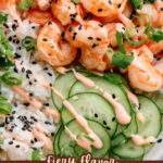 Start with a base of warm fluffy rice (or a mix of rice and shredded lettuce if you want to lighten it up). Layer on cucumber, jalapeño slices, shredded carrot, steamed edamame, and then your succulent shrimp drenched in that luscious sauce. Finish with a generous drizzle of spicy mayo, a scatter of toasted sesame seeds, sliced green onion, and if you’re like me, a little extra sriracha for good measure.