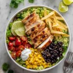 A vibrant and flavorful Southwest Salad featuring seasoned chicken, fresh vegetables, black beans, corn, and tortilla strips, all topped with a creamy Cilantro Lime Dressing. Perfect for a wholesome and satisfying lunch or dinner.