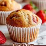 Delight in these moist and dense Strawberry Shortcake Muffins bursting with juicy sweet strawberries and topped with a crisp sugar crust. Perfect for breakfast or a snack, these muffins combine the buttery richness of a classic shortcake with the fresh flavor of ripe strawberries.