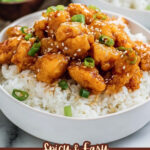 Sweet Chili Chicken features tender, bite-sized pieces of seasoned chicken breasts coated in a crispy cornstarch crust, fried to golden perfection, then tossed in a flavorful sweet and spicy sauce. This dish offers a delightful combination of savory, sweet, and tangy flavors with a hint of heat, served over fluffy white rice and garnished with green onions and sesame seeds.