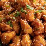 Sweet Chili Chicken features tender, bite-sized pieces of seasoned chicken breasts coated in a crispy cornstarch crust, fried to golden perfection, then tossed in a flavorful sweet and spicy sauce. This dish offers a delightful combination of savory, sweet, and tangy flavors with a hint of heat, served over fluffy white rice and garnished with green onions and sesame seeds.