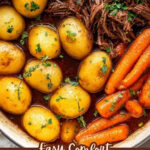 This classic pot roast recipe delivers a tender, flavorful beef roast cooked low and slow with hearty baby potatoes and carrots. The chuck roast is seared to develop a rich crust, then braised in a savory broth infused with garlic, herbs, and red wine vinegar. Finished with optional parmesan and parsley garnish, this comforting dish is perfect for a wholesome family meal.