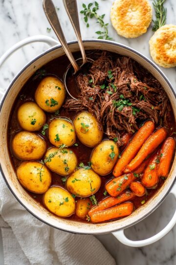 - Hearty veggies included: Baby potatoes and carrots soak up the braising liquid, making the whole dish a complete meal.