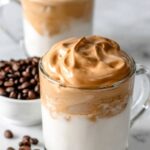 Whipped Coffee, also known as Vegan Dalgona Coffee, is a creamy and frothy coffee drink made by whipping instant coffee, sugar, and boiling water into a light and fluffy foam, then served over chilled dairy-free milk. This vegan-friendly, iced coffee treat is quick to prepare and perfect for a refreshing pick-me-up.